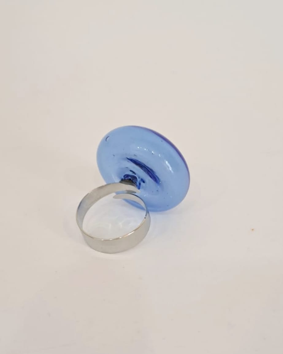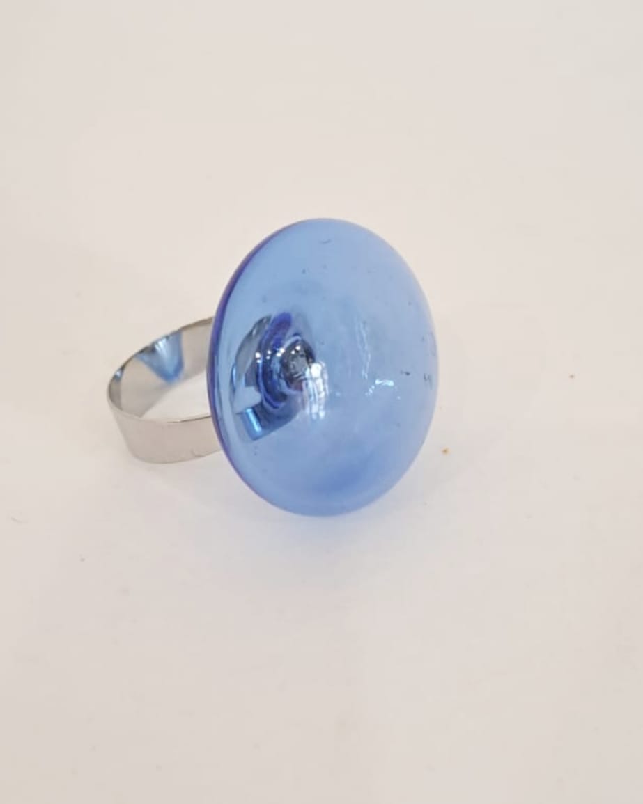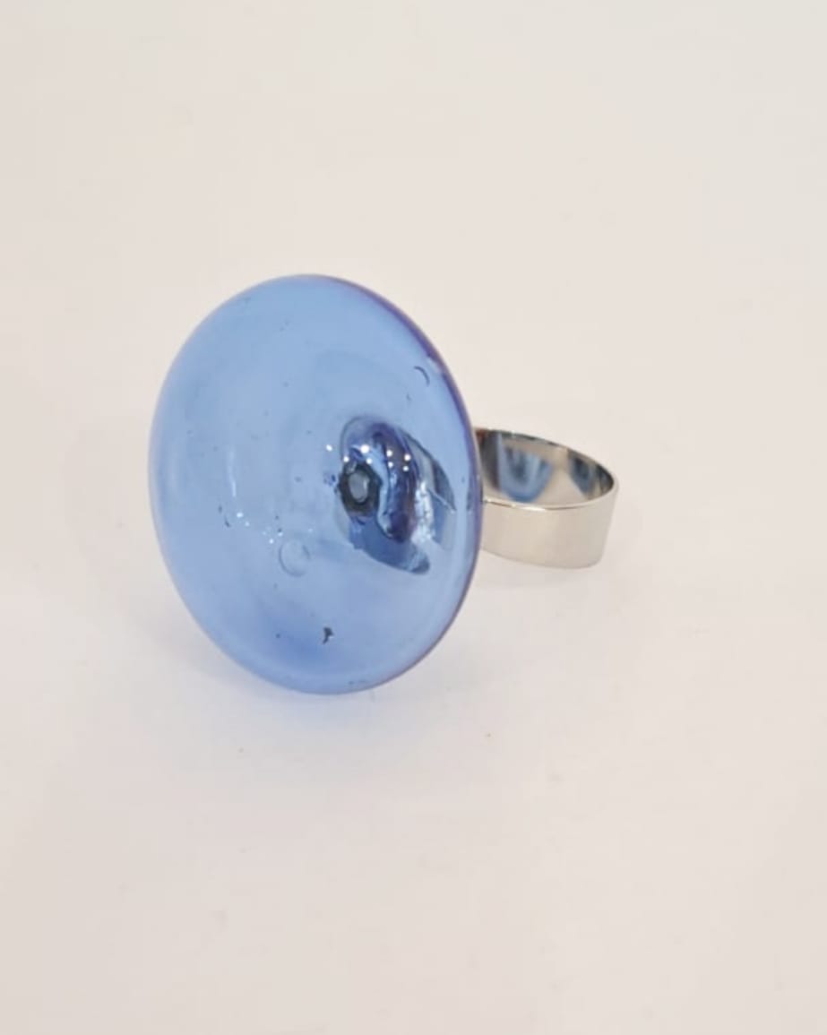 Anello regolabile con grande perla centrale in vetro di Murano soffiato a bocca.