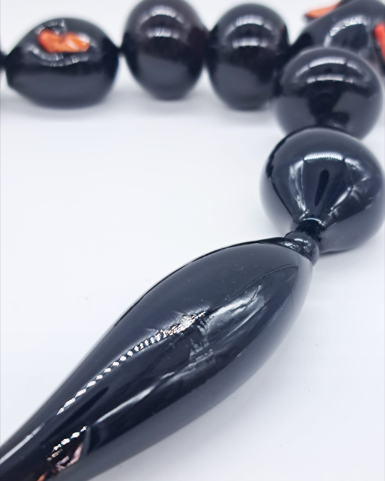 Ciò che rende questa collana davvero speciale sono i dettagli che raccontano una storia: la perla centrale e una perla laterale contengono al loro interno frammenti di vetro rosso incastrati e saldati. Questi piccoli “errori” intenzionali, trasformati in elementi di design, simboleggiano in modo potente e suggestivo il percorso dell’artigiano: anni di esperienze, tentativi e, sì, anche gli errori che hanno forgiato la sua maestria e perfezionato la sua arte.