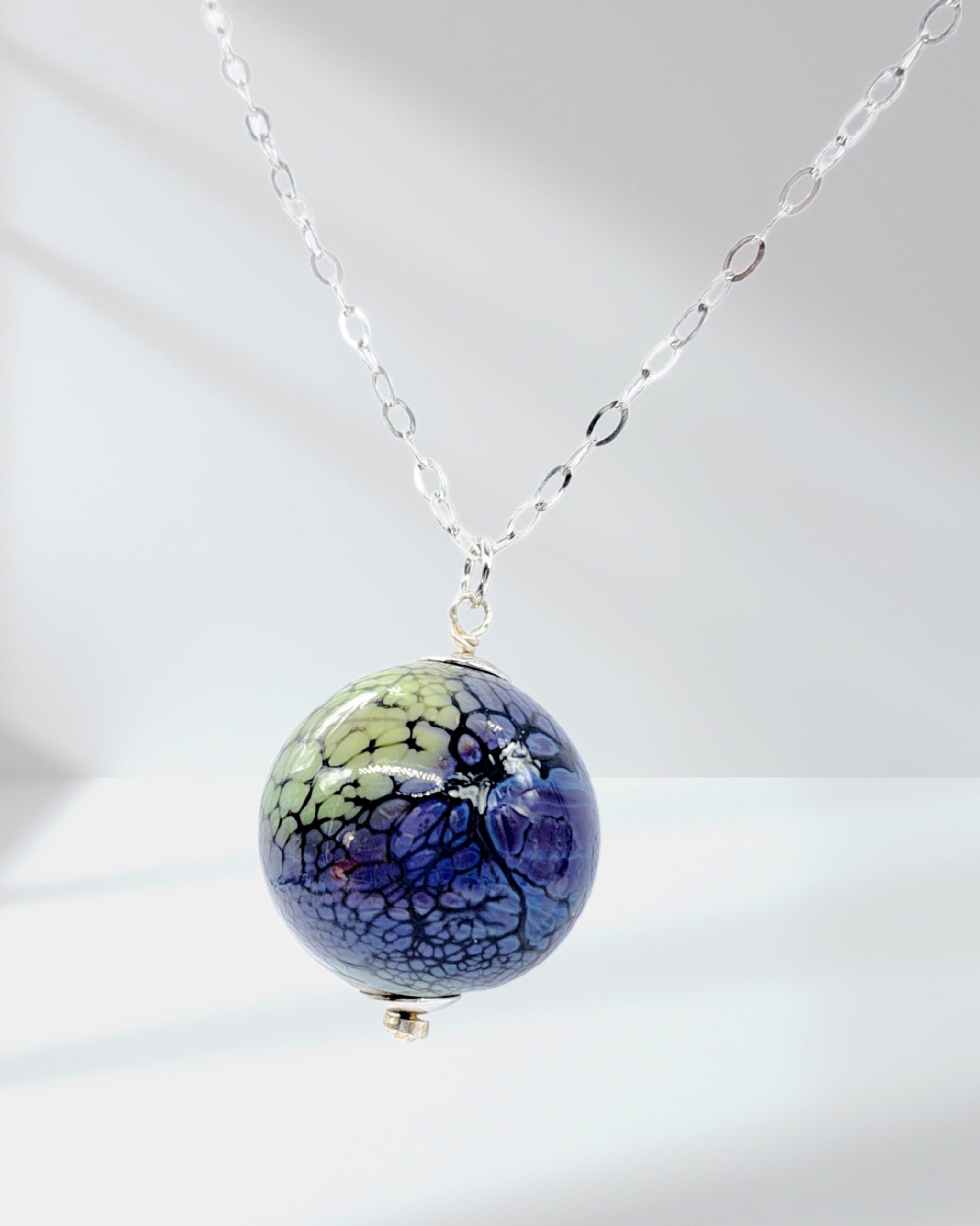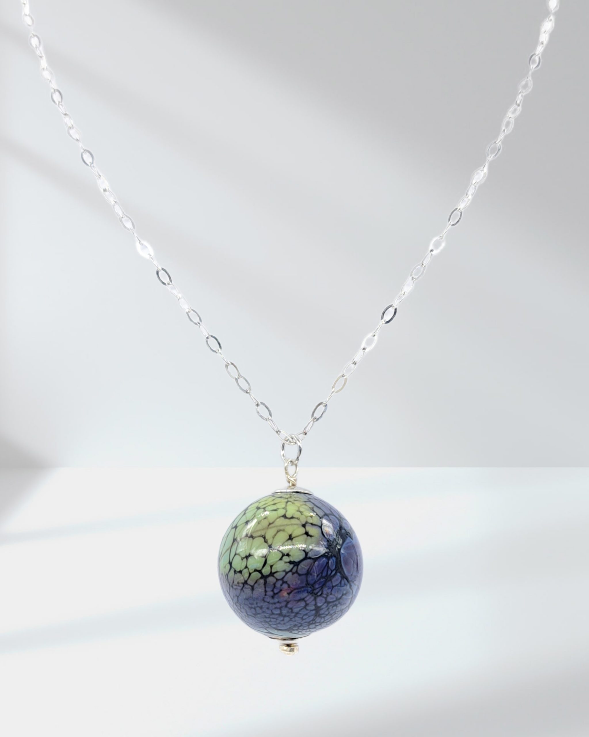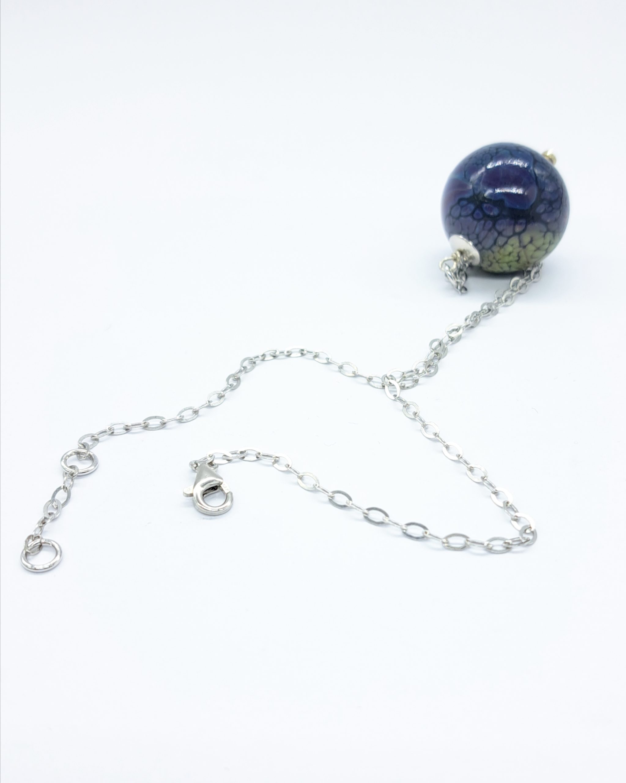 Il girocollo “Unica” è un vero e proprio pezzo d’arte da indossare, nato dalla mia passione per la lavorazione del vetro soffiato a lume. La perla centrale, realizzata a mano, è un’opera d’arte unica e irripetibile.