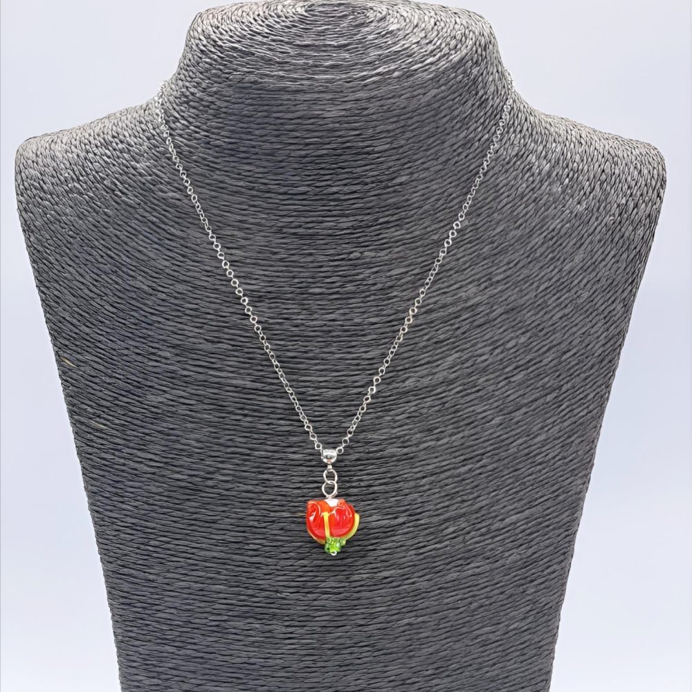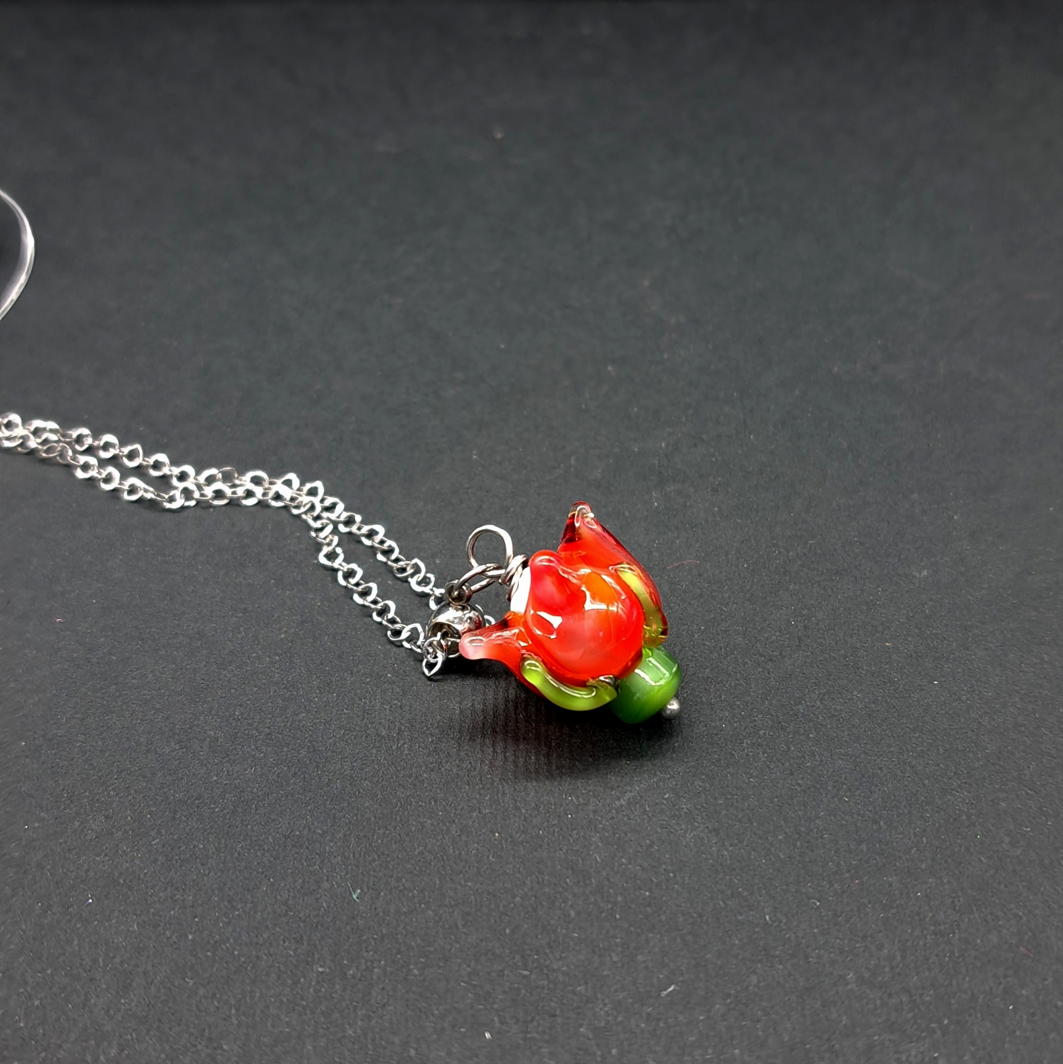 Un piccolo gioiello, un grande impatto. Questo ciondolo in vetro lavorato a lume, a forma di fiore di loto, è alto solo 1,5 cm ma cattura l’attenzione con la sua bellezza delicata. La catena sottile completa il look, rendendo questa collana perfetta per ogni occasione.