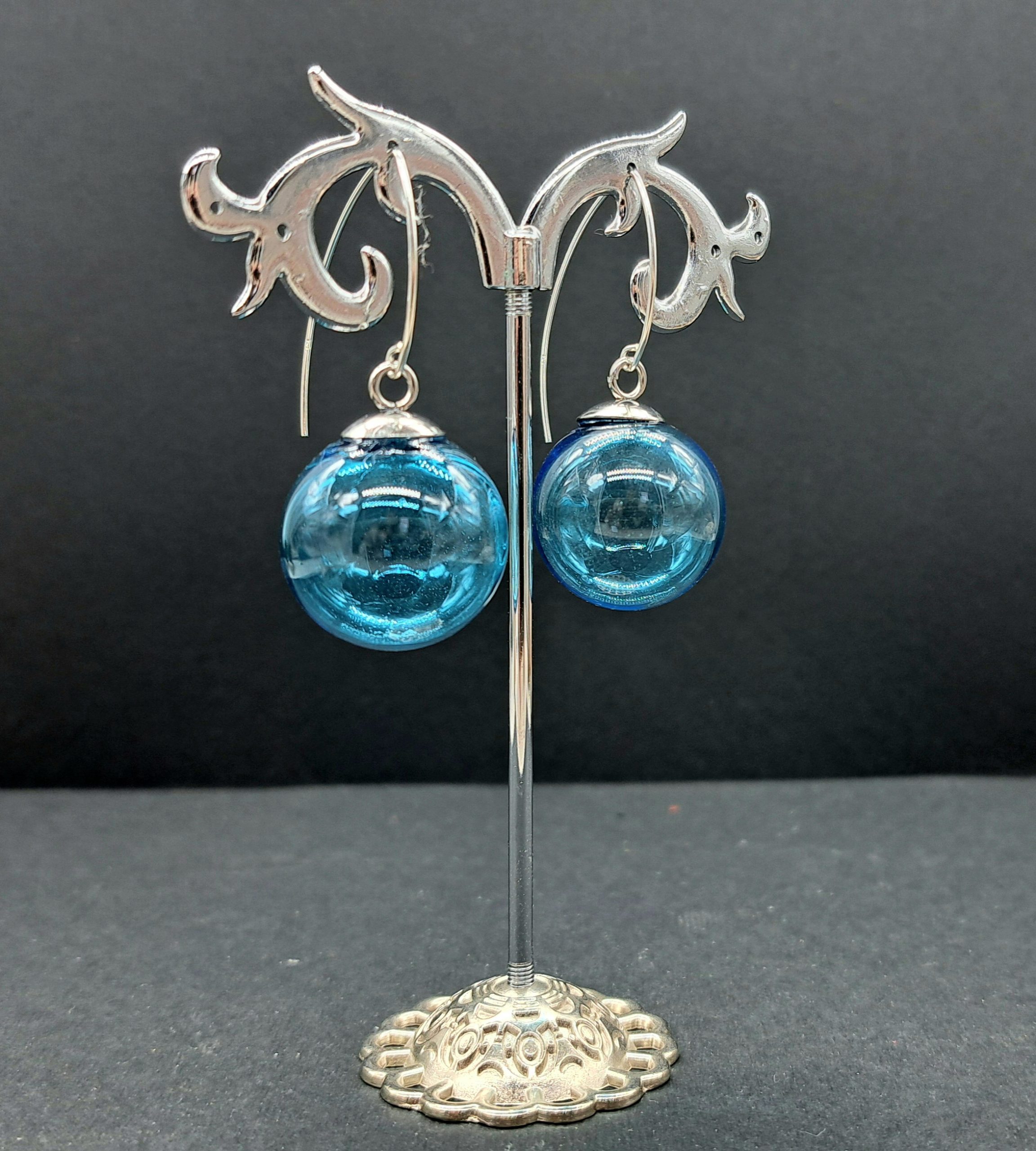 Raffinati orecchini in vetro soffiato a bocca in cristallo trasparente con monachella in argento.