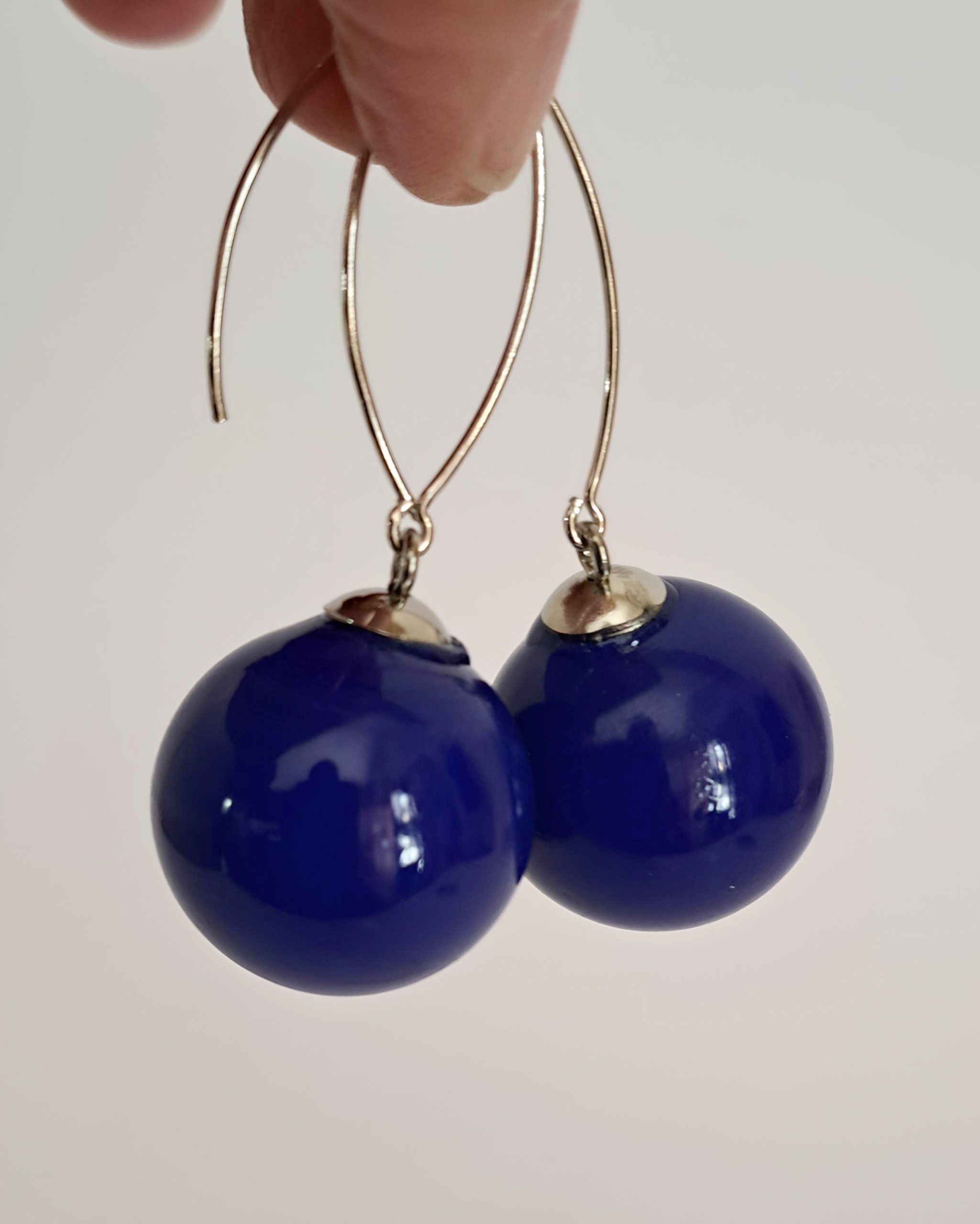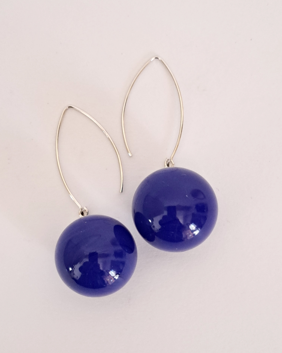 Raffinati orecchini in vetro di Murano  soffiato a bocca con monachella in argento. La tecnica del vetro soffiato rende le perle leggerissime e gli orecchini confortevoli da indossare.