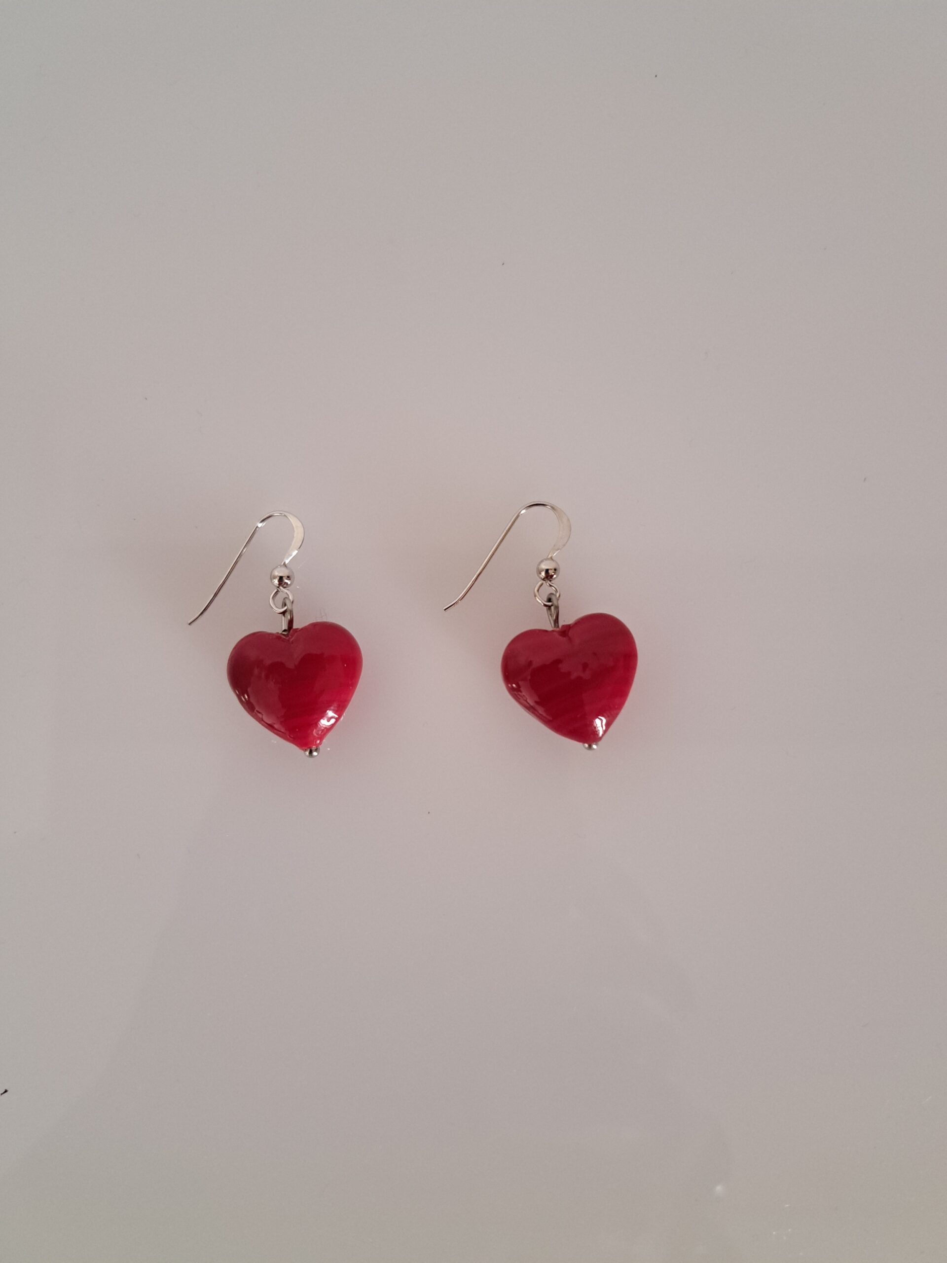 Eleganza discreta con gli Orecchini Cuori rosso porpora. Cuori in autentico vetro di Murano (lavorato a lume) in rosso porpora, montati su monachelle in argento. Ideali in parure con la collezione “Cuori”.